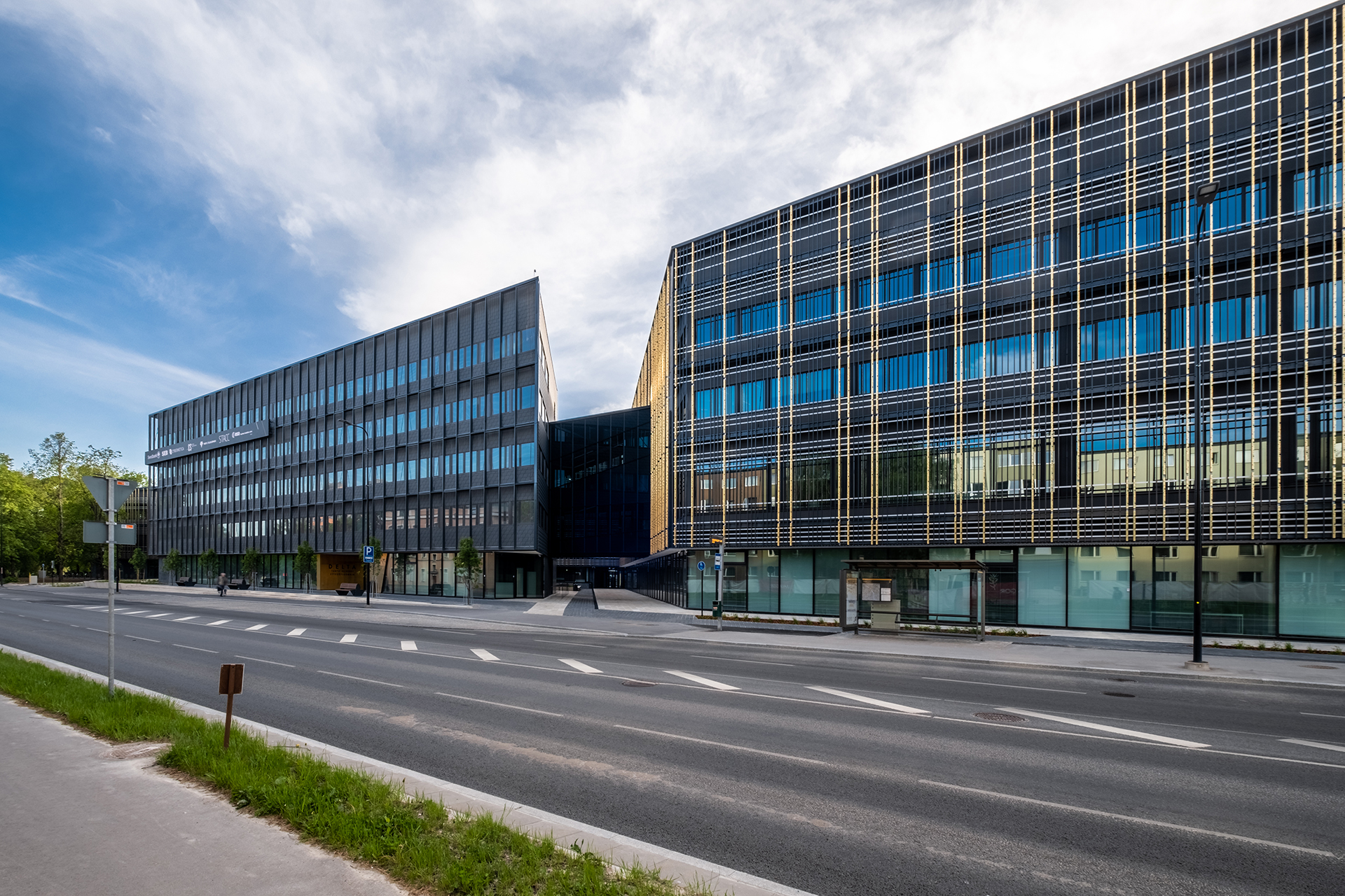 Ettevõtluskeskuse näol on tegemist 5. korruselise büroohoonega, mis on galeriide ning keldri kaudu ühendatud Delta õppehoonega. Lisaks on varasemalt projekteeritud maa-alune korrus. Esimese korruse mahust võtab suure osa ära allasõiduramp keldrisse. Hoovi pool, 1. korrusel on hoone mahu all parkimiskohad. Esimene korrus on tänava poolt maksimaalselt klaasitud ning avatud. Esimesel korrusel, kahel pool fuajeed paikneb kaks äripinda. Ülemised korrused on kinnisema ilmega. 2.-5. korrus on lahendatud erineva suurusega büroopindadena vastavalt tellija soovidele. Tänava ning lõuna poolsel küljel on lisaks hoone ees veel topeltfassaad, mis toimib päikesekaitsena ning seob ettevõtluskeskuse Delta õppehoonega. Kahte hoonet ühendavad klaasgaleriid 2-3 korruse mahus. Hoones on puuetega inimestele liftidega tagatud juurdepääs kõikidele ruumidele.