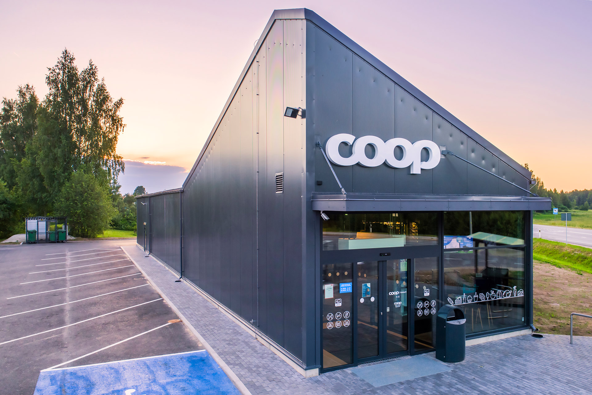 Kinnistul olemasolev 1-korruseline viilkatusega kauplus lammutati täielikult, sh maa-alused tarindid. Uus püstitatud kauplus on kahe- korruseline ehitis, asub Tartu-Räpina-Värska riigitee ääres Mellistes. Hoonele on projekteeritud maantee poole kõrge ja hoovi poole madal viilkatus. Peasissepääs on paigutatud hoone kagupoolsesse otsa, mis on kergesti ligipääsetav maantee kergliiklusteelt ja bussipeatusest. Ladude ja olmeruumide osa on viidud loodesse, kus asub laadimisala. Külastajad pääsevad parklast peasissepääsu kaudu kaupluse müügisaali. Eraldi sissepääs on ette nähtud taara vastuvõturuumi. Kaupluse personali liikumine toimub lao alal, kontoris ja olmeruumides. Viimased jagunevad meeste ja naiste ühiseks puhkeruumiks, riietusruumiks ning duširuumiks ja wc-ks. Personali sissepääs on laadimisala poolses fassaadis. Hoone teisel korrusel on tehnoruum, kuhu pääseb statsionaarse metall-trepiga. Sõiduautodele on kokku 16 parkimiskohta, sealhulgas 1 invaparkimiskoht peasissepääsu juures ja 2 kohta kaupluse personalile laadimisalal. Jalgratastele on 12 parkimiskohta.
